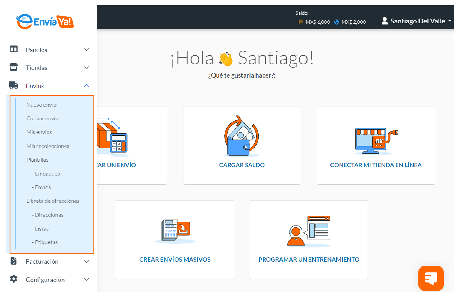 • Solicitar cancelación: comienzas el proceso para pedir una cancelación de un envío que ya hayas creado.