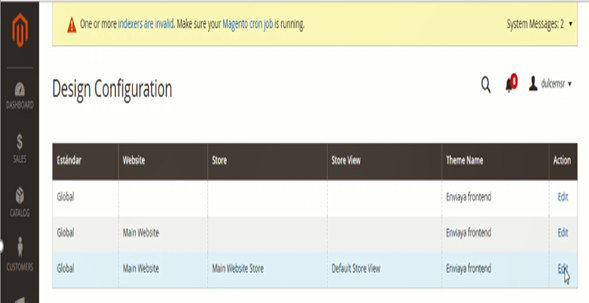 WEBSITE STORE- DEFAULT STORE VIEW” y la acción “EDIT”.